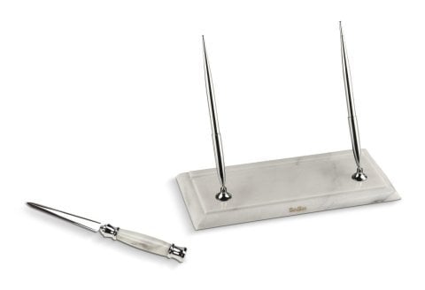Masa Tk Beyaz Mermerli Silver Dolmakalem + Tükenmez Krom + Mektup Açacağı
