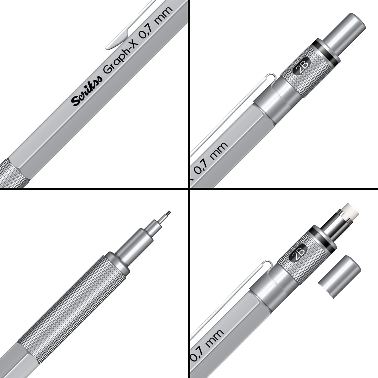 Scrikss Graph-X Mekanik Kurşun Kalem 0.7 Kurşun Saten Gri